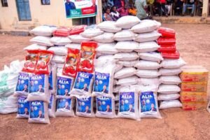 During the visit, the governor’s aide doled out bags of rice, wrappers, cartons of Magi, Salt and cash donations.